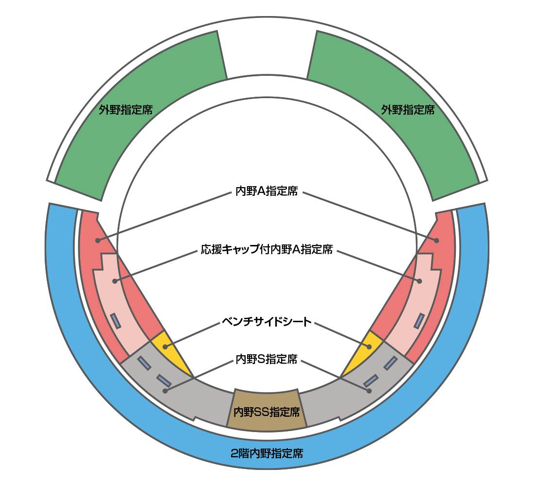 • ※外野応援指定席は、立ち上がって応援をするお客様が多数いらっしゃる場合があります。