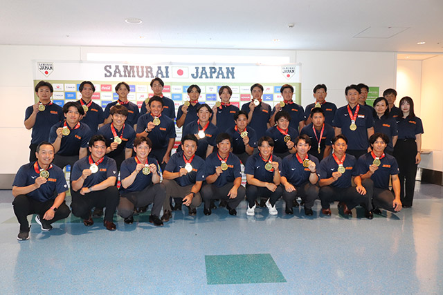 9月30日、「第31回 BFA アジア選手権」で、2大会連続21度目の優勝を果たした侍ジャパン社会人代表が帰国。羽田空港で取材対応が行われた。