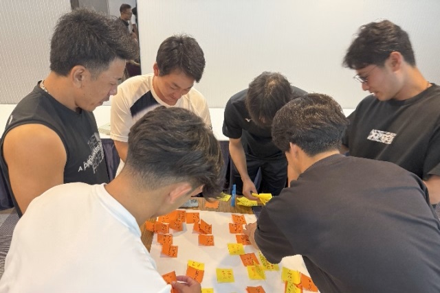 直前合宿初日の夜、ホテルでのミーティングではあるテーマについて自由な発想でアイデアや意見を出し合う「ブレーンストーミング」が行われた。お題は「社会人野球の魅力とは」。4つのグループに分かれ各々が意見を書いた付せんが次々にテーブルに並べられていった。