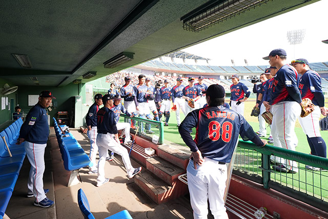 「ピッチコムやピッチクロックはある程度大丈夫かなと思いました。捕手も大丈夫そうに見えましたが、聞くと“まだいっぱいいっぱいです”とのことでした。あとは外野の深いフライですぐに内野へ返球してしまって、1度全力で外野手が定位置に戻ることがあったので、チームとして上手くやる方法を考えたいです。大会使用球に適応している投手とそうでない投手がいましたが、まだもう一回投げるので少しでも良くなればと思います。打者も含めて実戦から離れている選手もいるので、今日の結果はそこまで気にしていません」