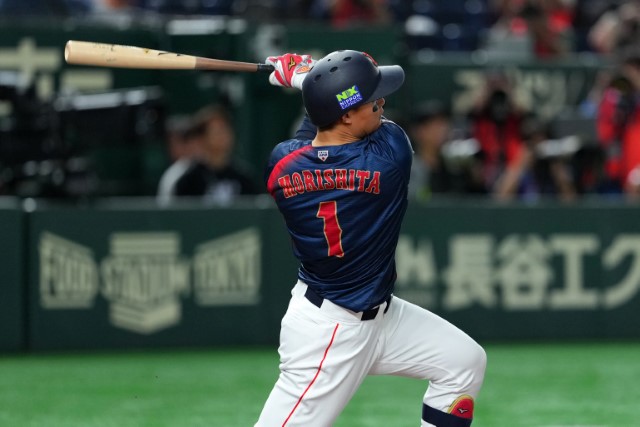 それでも第1戦に続いて打線がすぐさま反撃に出る。2試合続けて3番に起用された森下翔太(阪神)が右中間を深々と破る二塁打を放つと、2四球もあって満塁のチャンスを迎え佐々木泰(広島)のセンター前安打で1点を返す。なおも韓国投手陣の制球難が続き、連続押し出しで同点に追いついた。
