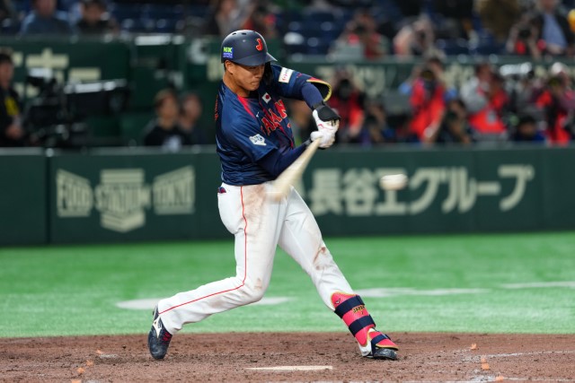 それでも直後の5回表。またも韓国投手陣がストライクゾーンへの適応に苦しみ、西川史礁(ロッテ)の投手強襲安打と2四球、押し出し四球で同点に追いつくと、石上泰輝(DeNA)の一、二塁間を破るタイムリーで2点を勝ち越した。