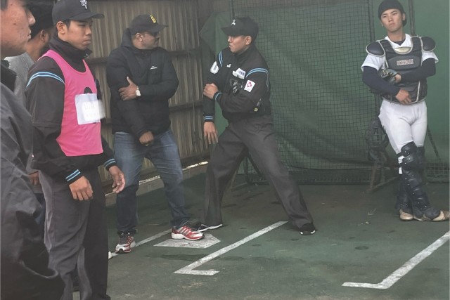その後、一行は奈良県生駒市の近畿大学 生駒総合グラウンドで開かれた、全日本野球協会主催の「アンパイアスクール」へ。プロ・アマ審判員による講習を見学し、二人制審判の動きや判断の考え方を学んだ。ディパック会長は「ネパールでは審判経験者が少なく、二人制は非常に有効だ」と語っていたが、この学びは現状を踏まえた大きな前進だった。